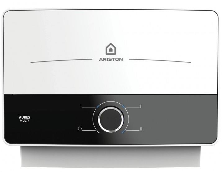 Водонагрівач електр. Ariston проточний AURES SM 7.7, 4,4л.хв, 7,7кВт, горизонтальний монтаж, мех. кер-ння, A, В'єтнам, біло-чорний